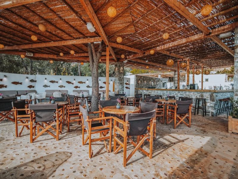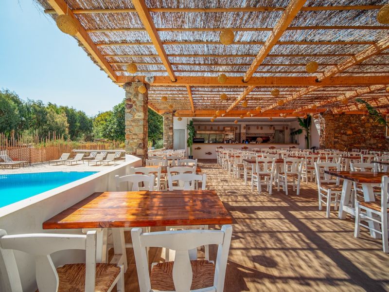 All the bungalows and camping site are sea front, and there is also pool & restaurant inside the complex and the all day bar located on the Resort beach.