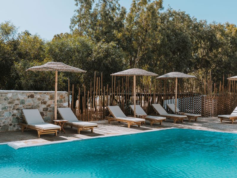 All the bungalows and camping site are sea front, and there is also pool & restaurant inside the complex and the all day bar located on the Resort beach.
